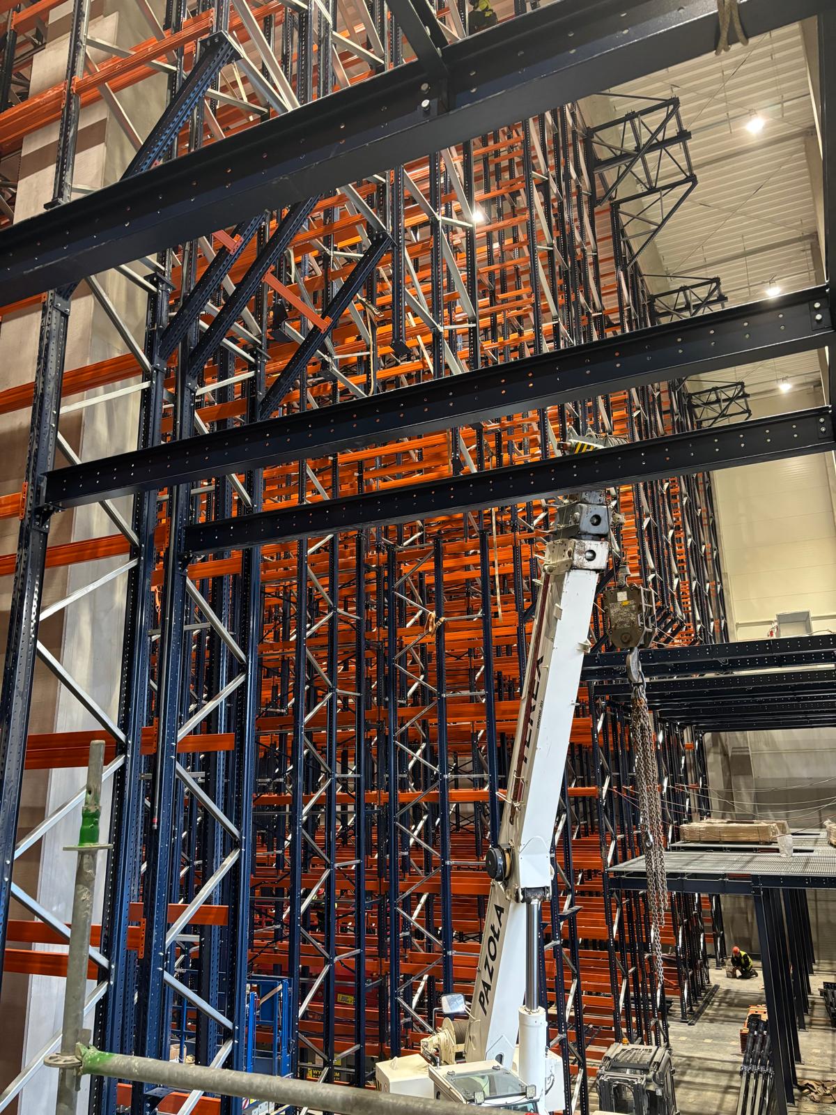Budowa nowego magazynu i pomieszczenia logistycznego. Wykonanie konstrukcji stalowych pod regały systemowe, montaż instalacji elektrycznych pod zasilanie elementów automatyki.